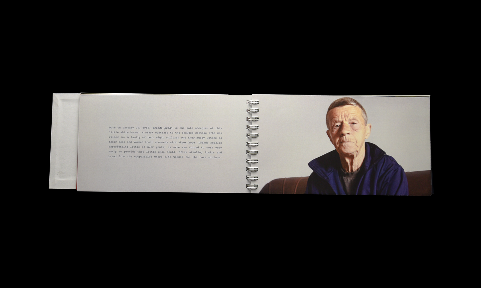 The project examines how tradition, duty, and survival shape third-gender identities and challenge conventional gender norms. It is expressed through a book of personal stories and photographs, and a short film featuring an interview with Drande Dodaj, a Burrneshë from Shëngjin, reflecting on her identity and role in the community.